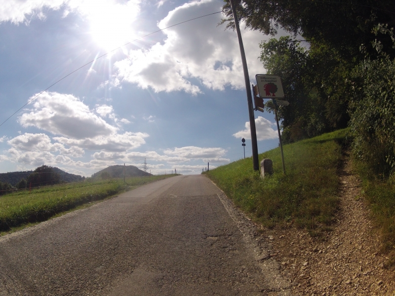 Ein weiteres Mal überquerte ich die Aare in Aarau und in Erlinsbach wechselte ich bereits vom Kanton Aargau in den Kanton Solothurn. Die Strasse führte jetzt nach Stüsslingen hinauf, so eine Art Hochebene im Aaretal. Ab dann geht es los. Zuerst entlang eines Bächleins und Waldrändern bis hinauf nach Rohr. Dann stehen die Höhenmeter an. Auf etwa 6 Kilometern steigt die schmale Strasse mehrmals mit einem Gefälle von weit mehr als 10%. Der Weg führt oftmals durch Wald. Doch plötzlich öffnet sich der Wald wieder und gibt den Blick über das Aaretal wieder frei. Der höchste Punkt liegt auf dem Gebiet des Kantons Baselland.