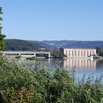 Samstag-Morgen am Klingnauer Stausee. Ob diese Ruhe auch am Abend noch da sein wird? Dann, wenn die Festhütte beim Bootsanlegeplatz fertig gebaut ist?