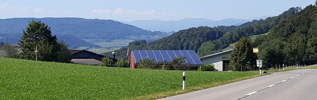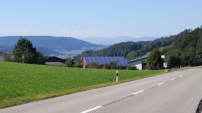 Ich fuhr eine Weile lang durch die schattigen Auenwälder des Aaretales hinauf. Doch schon in Veltheim war mir dies zu wenig. Ich bog ab, hinter der Kiesgrube nach Auenstein hinauf, dann über das Wellenbelch, die hügelige Strecke oberhalb der Aare nach Biberstein. Ein kleines Stück weiter bis nach Küttigen. Doch die Staffelegg war mir heute nicht genug. Ich wollte wieder einmal über das Benkerjoch, die steile Seite vom Aaretal hinauf. Als man die Strasse kürzlich renovierte hat man offensichtlich grosszügig den Wald links und rechts gerodet. Das steilste Stück, bis 16% Steigung ist jetzt an der prallen Sonne, wenigstens am Nachmittag. Doch die Passhöhe bietet von dieser Seite her einen schönen Blick hinunter nach dem Fricktal und weiter bis in den Schwarzwald hinaus.