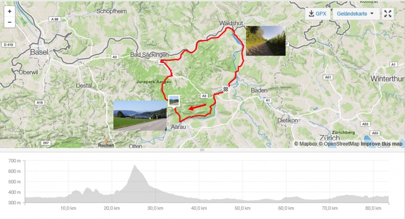 Ab Laufenburg hätte ich ja verschiedene Möglichkeiten, wieder zurück ins Aaretal zu gelangen. Ampferenhöhe ist wegen Bauarbeiten im Moment gesperrt, Bürensteig, Rotberg oder Böttstein könnten Varianten sein. Doch ich genoss den Schub, liess es treiben. Es lief mir gut. Und so nahm ich wieder einmal die Abzweigung kurz vor Koblenz ins Aaretal hinauf.