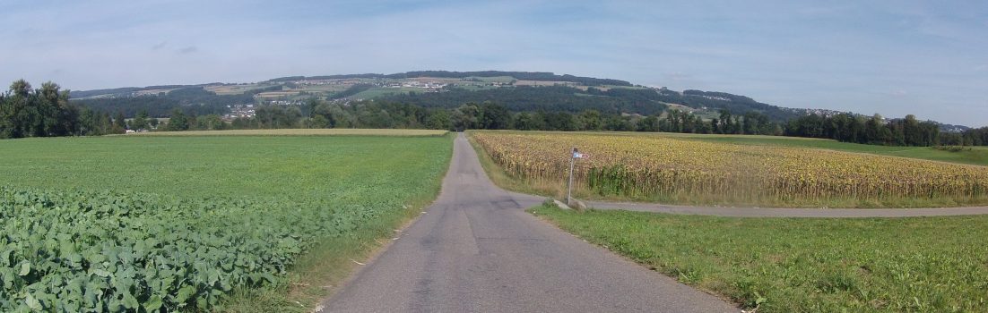 Seit dem ich nicht mehr darauf angewiesen bin, in den Randstunden des Tages Rad zu fahren, habe ich begonnen, viel öfter die Radwege, oder wenigstens Strassen und Strässchen zu benutzen, auf denen man weniger Verkehr vermuten kann. Wenigstens an den Wochentagen. Das geht dann zwar vielleicht etwas langsamer, ist manchmal auch hügeliger als auf der Hauptstrasse, um die Dörfer herum. Aber ich komme so an manchem Ort vorbei, den ich bis jetzt noch nicht gesehen habe.