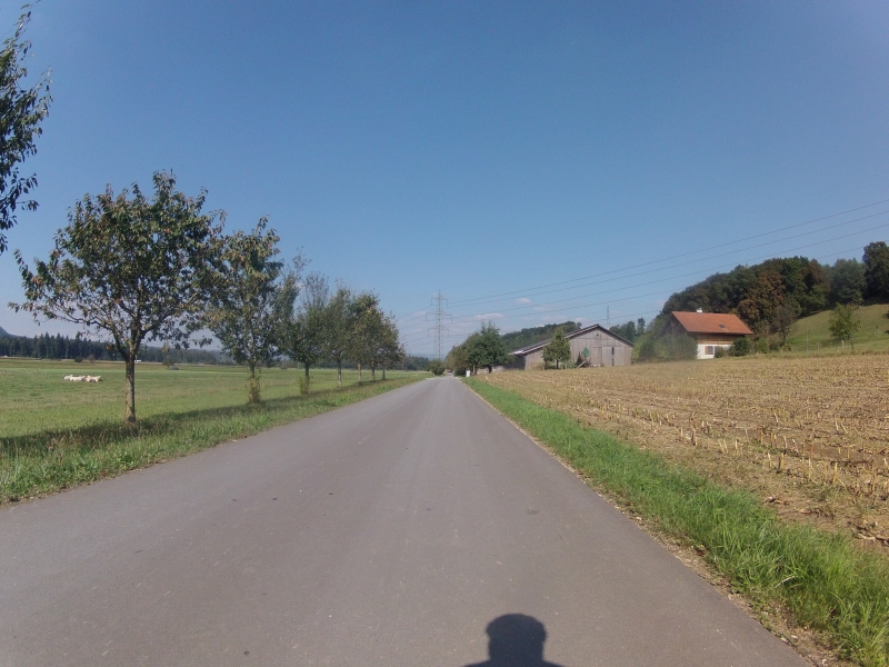 In Richtung Norden, bis zu der Stelle, wo die Aare in den Rhein fliesst. Ab dem nördlichsten Zipfel, in Full, wendet die Strasse in westliche Richtung. Ich liess mich eine Weile treiben. Die Vermutung, vom Rückenwind gestossen zu werden wurde einigermassen erfüllt.