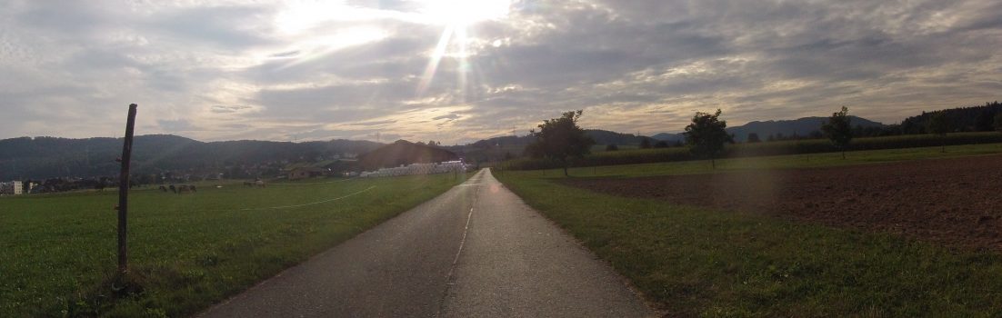 Während der Fahrt fällt es mir nicht so auf. Aber die Wolken, der schon wieder ungewohnt tiefe Sonnenstand, vielleicht auch der mittlerweile etwas spätere Nachmittag, zaubern eine bestimmte herbstliche Stimmung über das Land. Meiner Kamera am Lenker gelingen so ein paar recht gute Schnappschüsse.