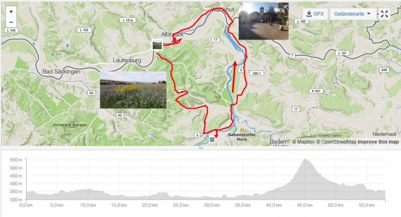 Heute war zur Abwechslung einmal die Strecke vorgegeben. Sie musste durch Waldshut führen. Ich wählte die Runde im Gegenuhrzeigersinn und fuhr deshalb vorerst das Aaretal hinunter. Meist auf mittlerweile alt bekannten Radwegen. Döttingen war für den Durchgangsverkehr, ausser für Fahrräder, gesperrt. Man bereitet sich dort auf das nahe Winzerfest vom nächsten Wochenende vor. Die Grenze überrollte ich bei Koblenz und gelangte so schon bald nach Waldshut.