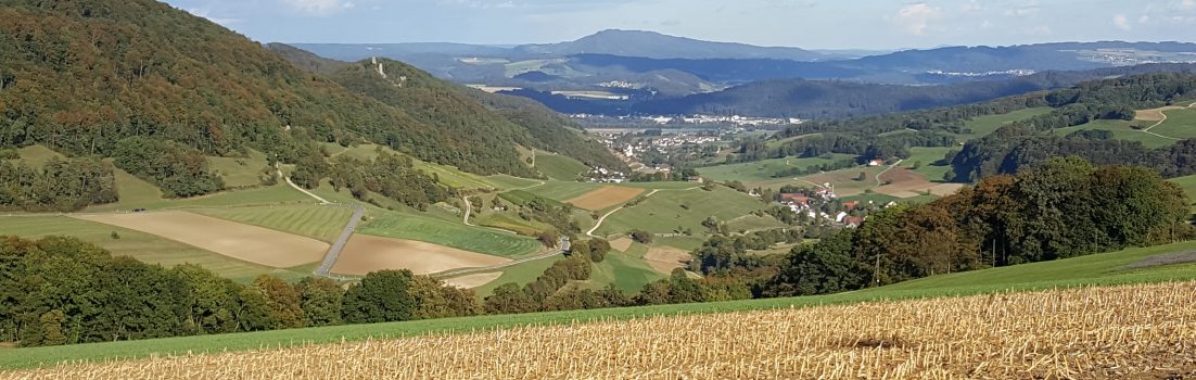 Ich entschloss mich deshalb, diesmal die ganze Länge der Staffelegg hinauf zu kurbeln. Von der Aare bis auf den höchsten Punkt. Etwa 300 Höhenmeter. Oben angekommen, hat man eine schöne Aussicht durch das Schenkenbergertal hinaus bis ins Aaretal und bei der heutigen guten Sicht auch noch ein Stück weiter.