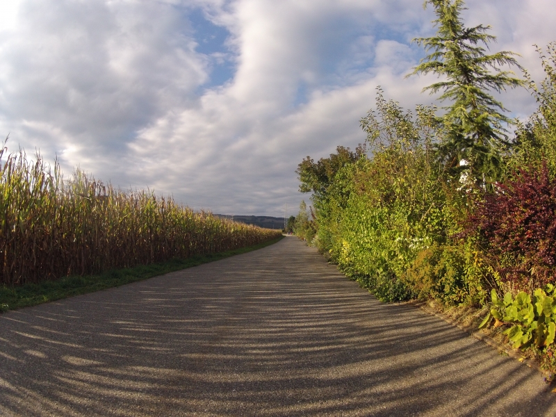 Obwohl es längst bekannt ist, erstaunt es immer wieder, wie lange die Schatten im Herbst werden. Auch die scharfen Konturen von Schatten und Sonne gehören in die Zeit des Herbstes. Zu dem schiesst meine Kamera am Lenker in den letzten Tagen auffällig viele Fotos mit eher bräunlichem oder gelblichem Farbton. Die Zeit des saftigen Grün in Wäldern und auf den Wiesen ist ebenfalls vorbei.