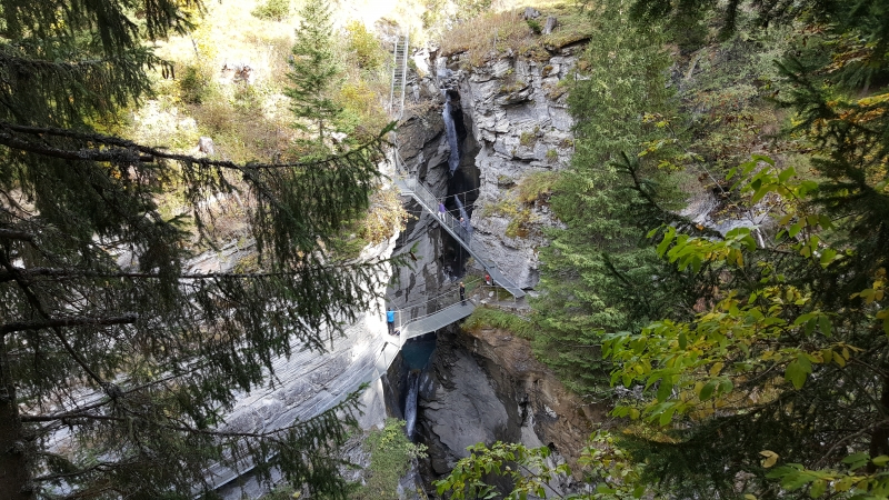 Vom Thermalquellenweg kann man auch über den Thermalquellensteg an einem schönen Wasserfall der Dala, dem Flüsschen durch Leukerbad, entlang in die Höhe steigen. Der Steg ist an der Felswand befestigt und besteht im Wesentlichen aus einem Gitterrost und mehreren, sehr steilen Treppen. Dabei kommt man in nächster Nähe an einem dreistufigen Wasserfall vorbei.