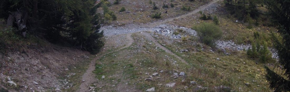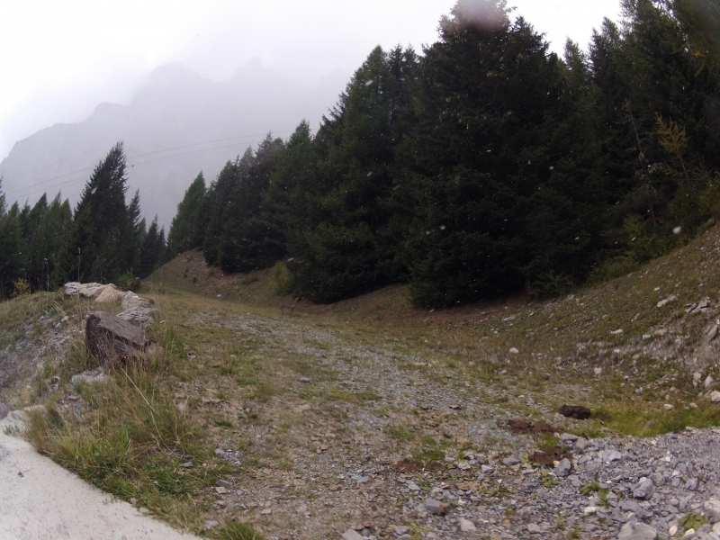 Die Abzweigung ins Tal hinunter war mir zu ruppig. Mit dem Mountainbike vielleicht, ja. Aber nicht mit dem Cyclocrosser. Zudem fing es an zu schneien. Wurzeln und Steine wurden langsam rutschig. Ich entschied mit für eine Abfahrt auf dem Kiesweg. Das erfüllte vorerst meine Erwartungen an ein Offroad-Erlebnis.