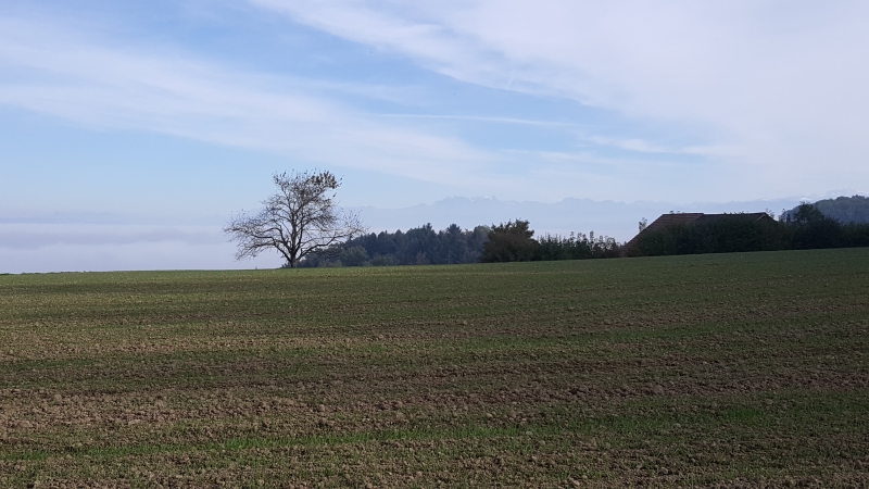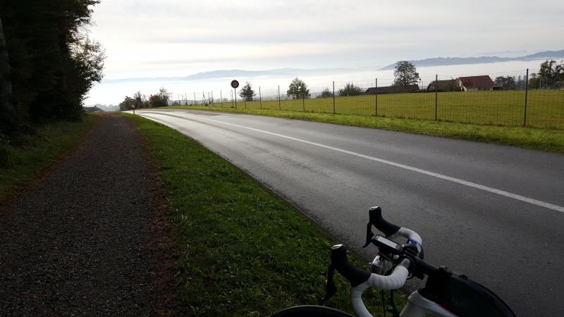 Für den Heimweg entschied ich mich nicht wie ursprünglich geplant um den Hallwilersee herum zufahren, sondern vorerst auf der Höhe zu bleiben und einen Weg hinüber zum Bünztal zu suchen. So gelangte ich denn über Fahrwangen und Sarmenstorf wieder in die Tiefe. So schaffte ich es denn auch, an der Nebeldecke vorbei zu kommen.