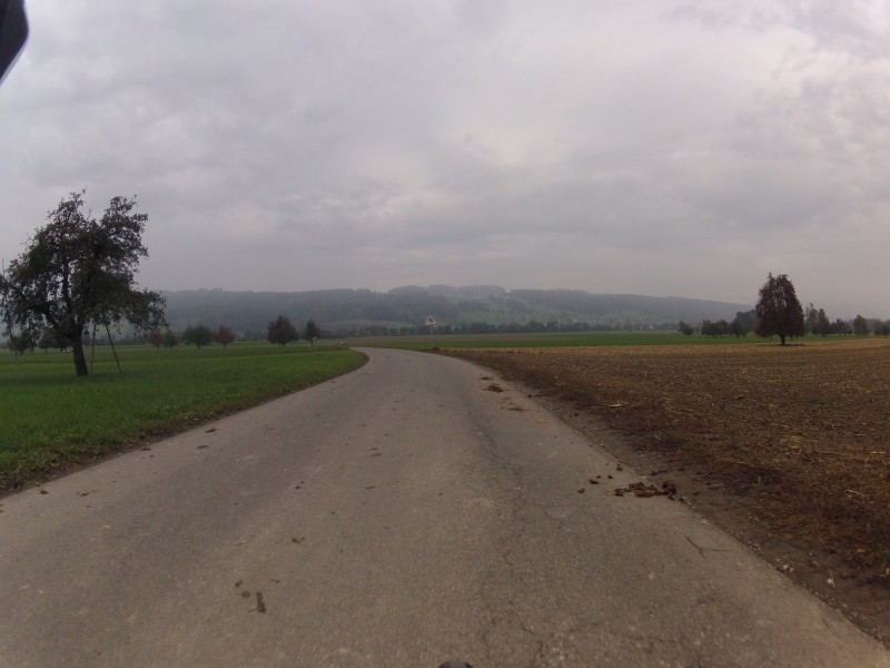 Eigentlich war der Regen erst für viel später prognostiziert gewesen. Als ich den Renner auf die Strasse stellte, fielen die ersten Tropfen. Stimmt, da war noch ein klitzekleiner Fleck auf dem Wetterradar, wird schon nicht so schlimm sein, und weg war ich. Es dauerte bis nach Egliswil, bis die Strassen einigermassen trocken waren. Dafür war die Sicht ins Seetal zwar nicht sehr berauschend, aber immerhin, durfte ich auf einen trockenen Himmel hoffen.