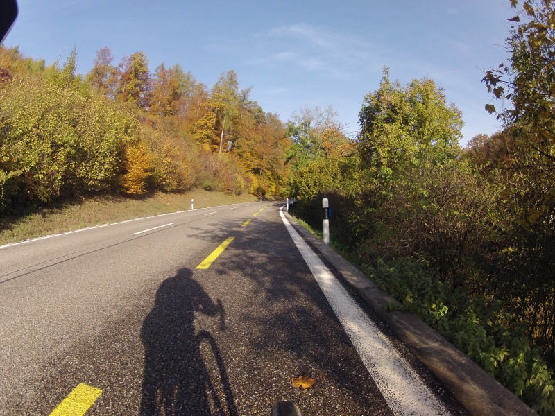 Nach dem Rotberg fuhr ich dann bei Hottwil noch ein Stück weiter hinunter, um auch an der Bürensteig noch ein paar Höhenmeter zu gewinnen. Weil die Strasse auf der von der Sonne beschienen Talseite in die Höhe führt, schoss meine Kamera am Lenker während dieser Auffahrt reihenweise wunderbare Fotos.
