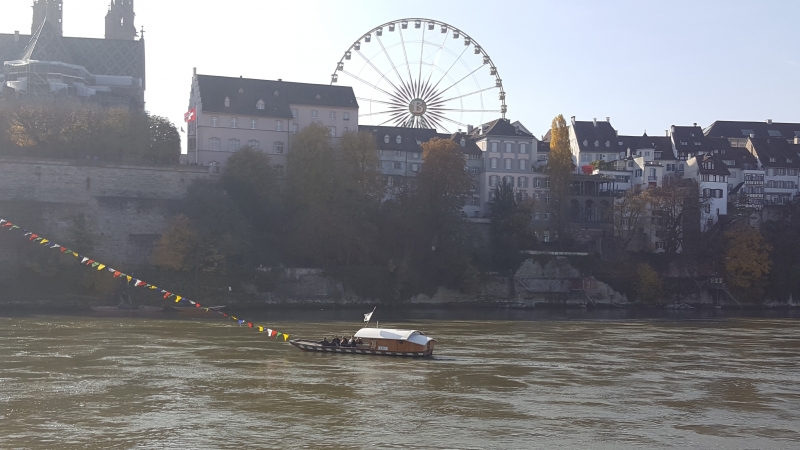 Solche Tage sind ja auch immer ein bisschen etwas besonderes. Sie sollen auch Abwechslung sein im Alltag. Statt immer nur über Brücken das Rheinufer zu wechseln, warum nicht einmal die Fähre benützen, auf der auch ein Geocache hin und her fährt? Von der eigentlichen Überfahrt haben wir dann aber doch nicht so viel mitbekommen.