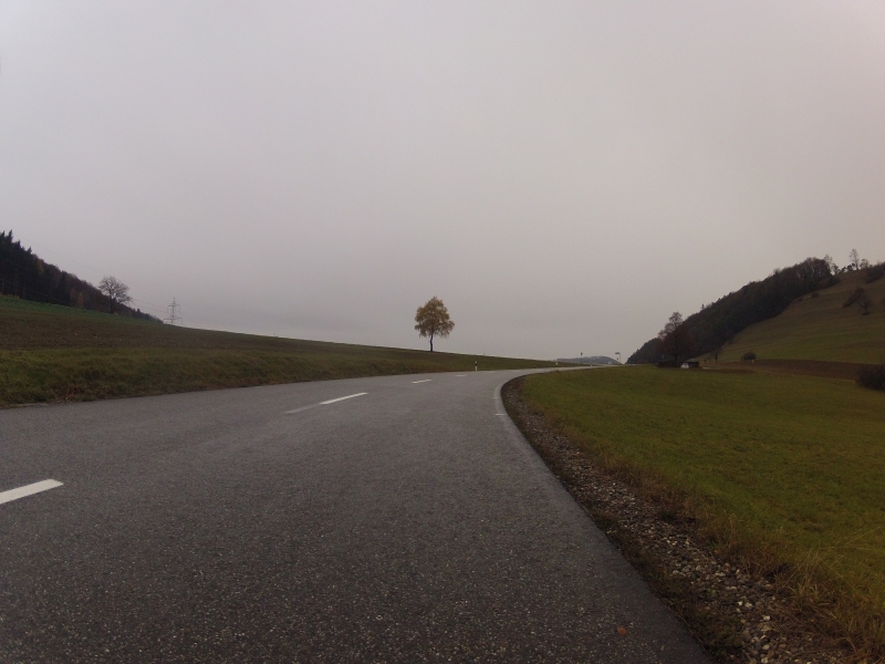 Der Regen liess nach. Nach dem Rotberg folgte noch die Bürensteig. Die Strasse trocknete sogar langsam ab. So dass ich in Mönthal die Regenklamotten wieder auszog.