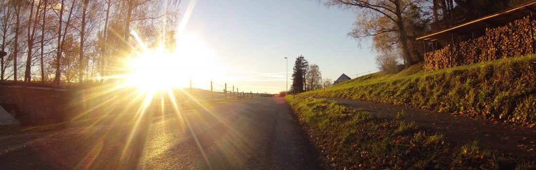 Leider hat die tiefstehende Sonne aber auch schon wieder den Nachteil, dass sie längst nicht mehr über alle Hügel hinweg scheinen mag. So legte sich dann bald einmal der Schatten der Lägern auf meinen Weg. Nach Dielsdorf, dem einen Wendepunkt meiner heutigen Fahrt, hielt ich mich deshalb für die Rückfahrt an die sonnenbeschienene Seite des Furttales. Das Licht und die noch nassen Strassen blendeten zwar ab und zu, doch der Kamera am Lenker gelangen dennoch ein paar recht gute Schnappschüsse.