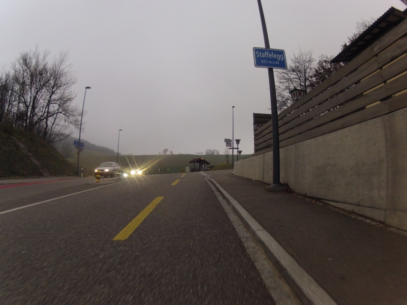 Danach noch ein weiteres Stück aufwärts bis nach Küttigen, an den Fuss der Staffelegg. Heute Abend hat es auf der Passstrasse kaum Verkehr.