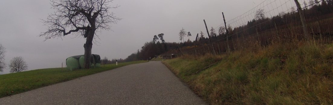 Danach lasse ich es ins Fricktal hinunter laufen. Fahre ein Stück aufwärts in Richtung Bözberg, nehme aber in Bözen die Abzweigung zur Ampferenhöhe und nach Mönthal. Es folgen noch die Bürensteig und der Rotberg. Unterwegs wird es irgendeinmal dunkel.