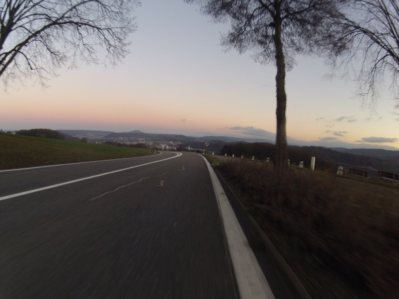 Noch ein letzter Blick in die Dämmerung, bevor ich es hinunter ins Aaretal sausen lassen konnte. Auf dieser Abfahrt nochmals eine volle Portion eiskalter Biswind erhalten. Doch nach ein paar Kurven durch das Quartier war ich dann schon bald wieder zu Hause, in der Wärme.