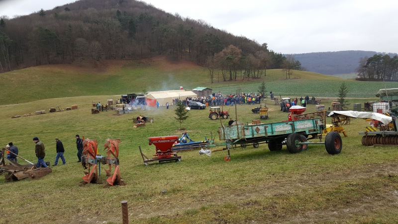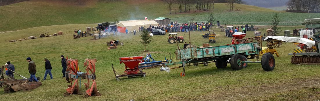 Als ich heute auf meiner Runde eben wieder an dieser Wiese vorbei fuhr, wurde alles klar. Bis weit ins Tal hinunter trug die Bise die Stimme des Auktionars. Es wurden “landwirtschaftliche Fahrhabe und Gerätschaften” versteigert.