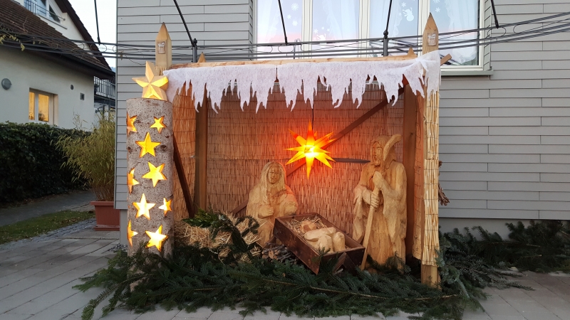 Es war mittlerweile bereits so spät geworden, dass bereits an vielen Orten schon wieder die Dekorationen beleuchtet wurden. Dabei ist mir diese Krippe in Auenstein heute besonders aufgefallen.
