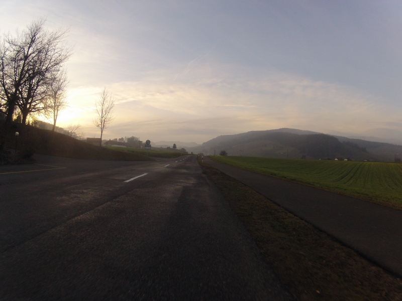 Ich fuhr dann aber doch noch bis nach Aarau hinauf, überquerte dort die Aare, bevor ich auf der anderen Seite, wiederum oben durch über das Wellenblech zurück fuhr. Tatsächlich blieb der Nebel liegen. Erst als ich wieder in unsere Gegend zurückkam, konnte ich wieder unter einigermassen abgedecktem Himmel fahren.