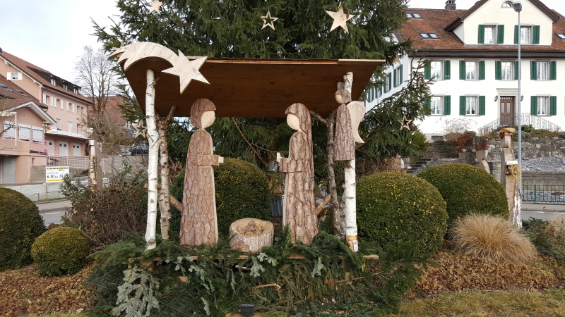 Für die heutige Tour wählte ich wieder einmal die Strecke über dem Reusstal aus, statt wie die letzten paar Male unten durch. Sanft ansteigend gelangt man so auf den Mutschellen hinauf. Auch dieses Jahr ist der Strassenkreisel in Bellikon wieder richtig weihnachtlich geschmückt.