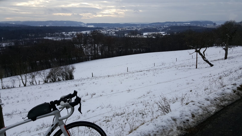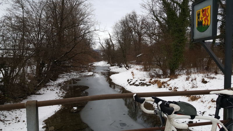 Wieder unten im Aaretal angekommen, fuhr ich bei Biberstein bereits wieder zurück, auf die andere Seite der Aare. Der Wind schob jetzt spürbar. In Wildegg dann das Bünztal hinauf nach Othmarsingen. Auch hier durfte ich vom Rückenwind wieder etwas profitieren. Weiter ging es auf recht gut vom Schnee befreiten Radwegen und Radstreifen hinüber nach Mägenwil, hinunter nach Mellingen, hinauf nach Fislisbach und über Birmenstorf wieder zurück ins Aaretal.