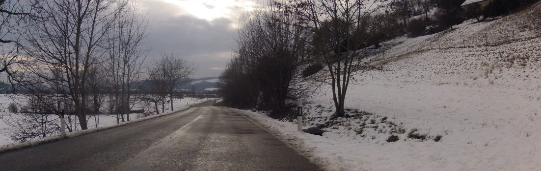 Man mag es vielleicht auf dem Foto erkennen. Zur Zeit sind die Strassen furchtbar schmutzig. Es fliesst stellenweise etwas Schmelzwasser über die Strassen, doch das sammelt sich dann meist, ohne durch die Abflüsse laufen zu können, denn dort liegt ja noch der Schnee drauf.