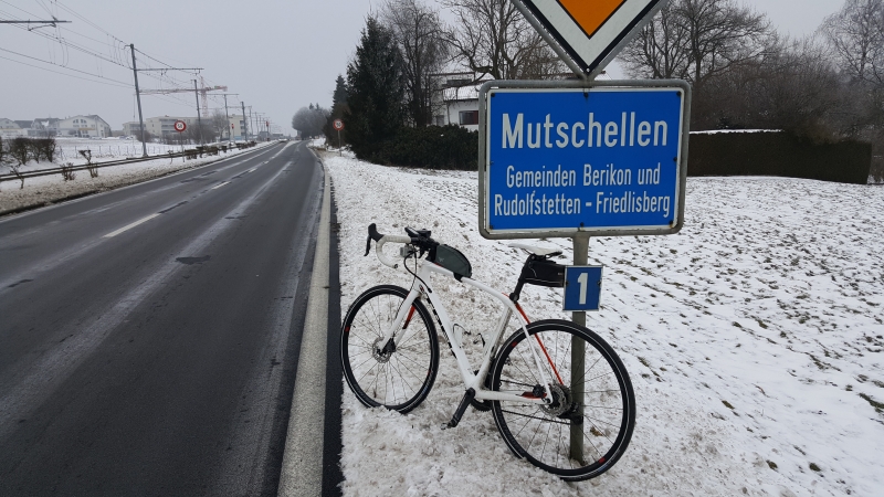 Danach ging es hinunter ins Limmattal. Die aufgestaute Wärme in den Kleidern reichte gerade um unten nicht total durchfroren anzukommen. Lediglich die Finger der rechten Hand, die litten. Denn die mussten für obiges Foto kurz aus dem warmen Handschuh raus. Und diesen Wärmeverlust konnte ich während der Abfahrt nicht mehr kompensieren.