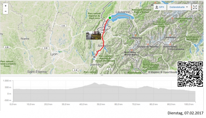Wieso bist du nach Genf nicht auf dem kürzesten Weg nach Valence (Rhonetal) gefahren? Diese Route wäre um einiges schneller (flacher) gewesen, weil du da quasi der Rhone entlang fährst und fast keine Steigungen zu bewältigen hast.
