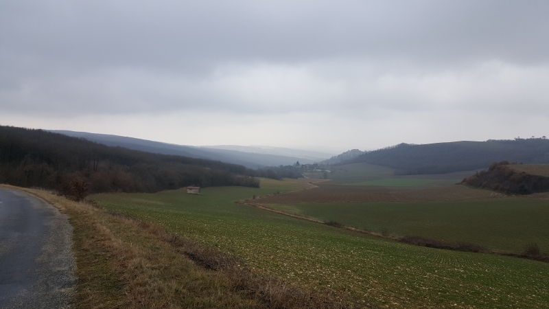 Statt der Berge und relativ engen Täler, statt der gut sichtbaren Schneefallgrenze rundherum, wurden die Tallandschaften deutlich weiter und flacher. Auch die Vegetation hat sich total verändert. Irgend einmal fuhr ich an den letzten Nussbäumen vorbei. Ein paar Täler weiter südlich, das erste Lavendelfeld. Natürlich nicht violett blühend, wie wir uns das vorstellen, sondern abgeerntet vom letzten Herbst, braune lange Reihen von kniehohen Stauden auf den Feldern. Auch der Häuserbau hat sich mittlerweile verändert, hin zu mehr südlichem Charakter. Irgendwo um Crest herum muss ich wohl eine Nord-/Südgrenze überfahren haben.
