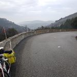 Ich durchquere auch heute wieder unzählig viele kleine Dörfchen. Kaum Leben darin. Vielleicht mal ein Laden, der nicht geschlossen hat. Auch viele Wegweiser und Hinweistafeln zu Pizzerias, zu Imbissbuden, “für den kleinen Durst”, oder “den kleinen Hunger”. Alles geschlossen, oder gar nicht da, weil der Grill- oder Getränke-wagen weggefahren wurde. Kommt dann vielleicht wieder, wenn die Touristen hier sind. Finde dann aber doch noch einen örtlichen kleinen Laden, der gerade den Rollladen runterlassen will, wo ich mir eine Kleinigkeit für das Mittagessen besorgen kann. Essen, draussen auf dem Parkplatz.