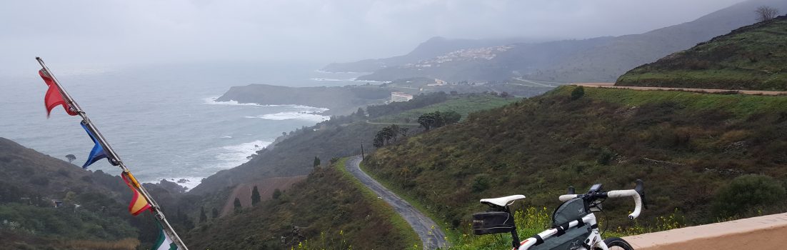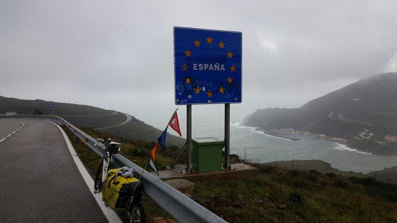 Mein Weg führte gleich von Anfang an auf der “Route des Cols” weiter, zuerst ein Stück hinauf. Bald änderte der Name auf “Route des Vins”. Die Topografie blieb die Gleiche. Weiterhin hügeliges auf und ab, aber am Strassenrand standen jetzt reihenweise Rebstöcke. Nach einigem Auf und Ab, entlang des äussersten Randes der Pyrenäen, überfuhr ich dann auch die Grenze nach Spanien.