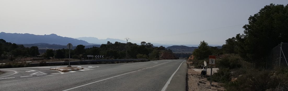 Meine Strecke auf diesem Plateau pendelt zwischen 500 und etwa 650 Meter über Meer hin und her bevor ich die Region Valencia verlasse und neu in die Region Murcia hineinfahre.