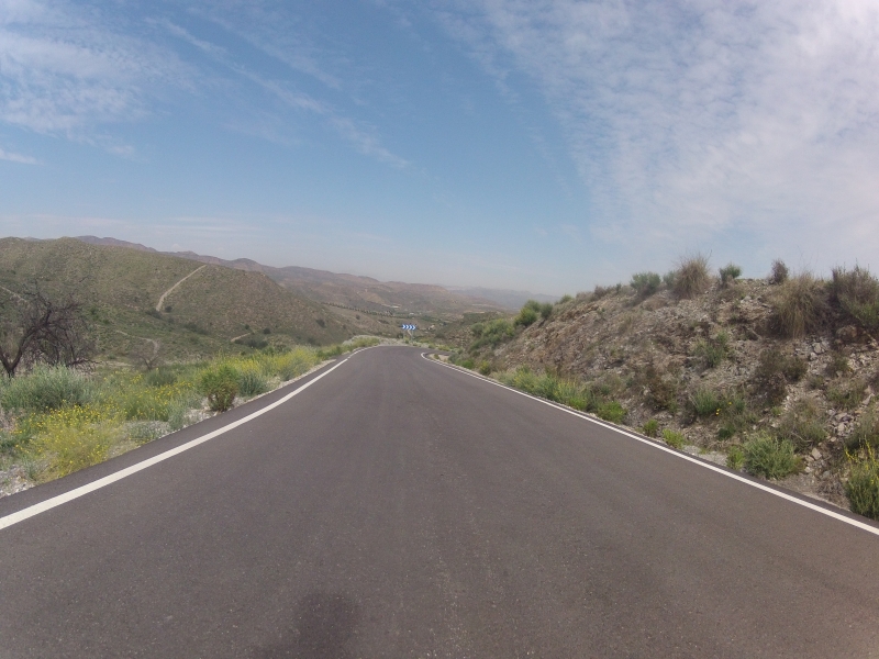 Nach dem Essen geht es die acht Kilometer Abfahrt heute wieder bergauf. An der Abzweigung auf dem Bild fahren wir dann weiter in Richtung Lubrin. Allerdings nur bis nach El Pocico, wo wir den Abzweiger durch unsere entdeckte Kügelibahn hinunter nehmen.