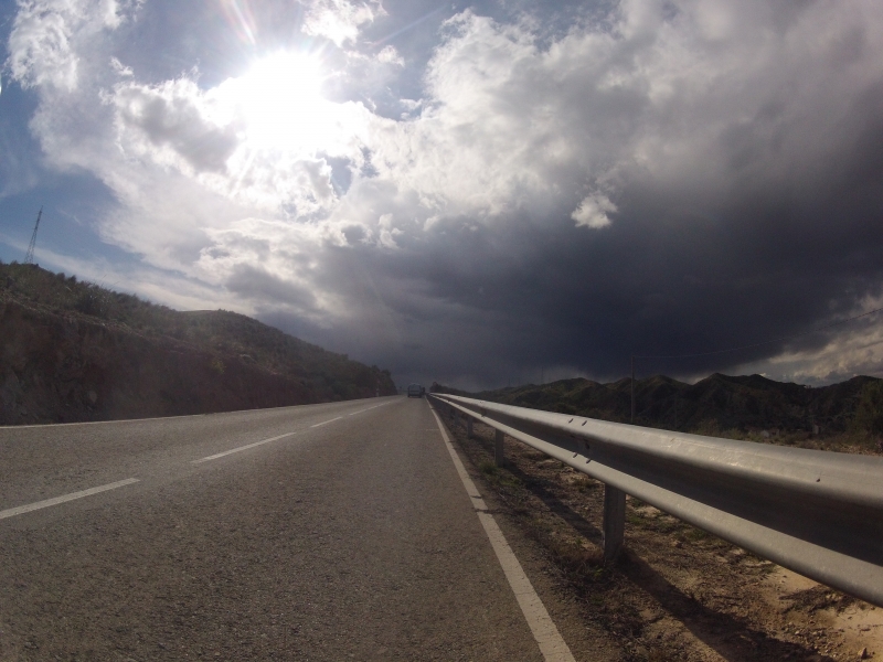 Danach geht die Fahrt noch über ein paar kleinere Gegensteigungen hinunter nach Albox. Ich freute mich schon, dass wir die Wetterfront doch noch ausgetrickst hatten. Ich war noch selten so dankbar für den kräftigen Gegenwind, der uns die Niederschläge bis jetzt fernhielt.