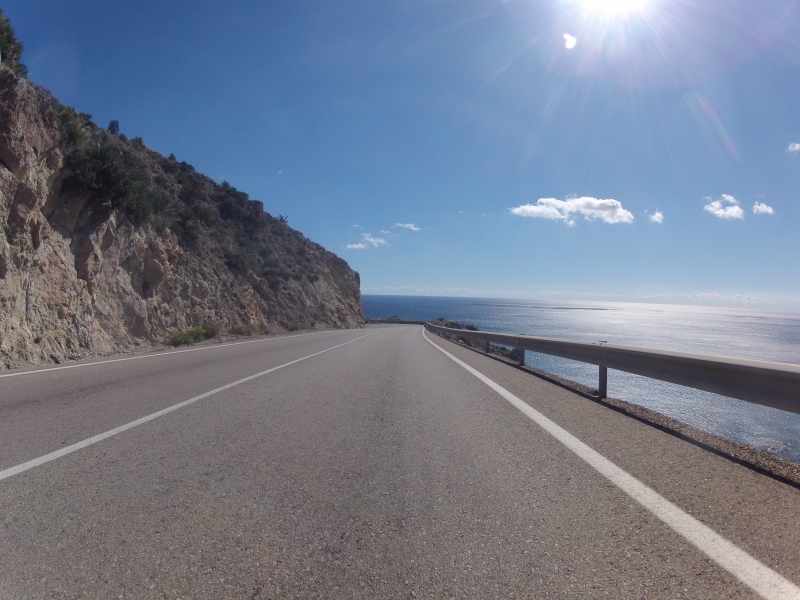 Entsprechend gemächlich fahren wir der Küste entlang nach Süden. Eine kurze Erholungspause auf der Abfahrt vom Carboneraspässchen ist willkommen.