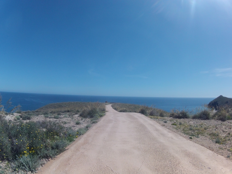 Die Abfahrt vom Carboneraspässchen hinunter ans Meer war ein Genuss. Kein Seitenwind der störte. Die weitere Fahrt ab Carboneras ins Hinterland, obwohl sie ziemlich hügelig und mit einigen steilen Rampen gespickt ist, bot heute keinerlei Probleme. Im Gegenteil, der fehlende Wind liess die Wärme zwischen den Felsen sitzen.