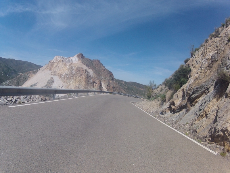Ein besonderes Highlight während der Abfahrt nach der Passhöhe zu unserem Mittagslunch in Albanchez ist jeweils der Blick auf den Abbruch an den Berg, aus welchem Marmor, scheinbar in riesengrossen Blöcken abgebaut wird.