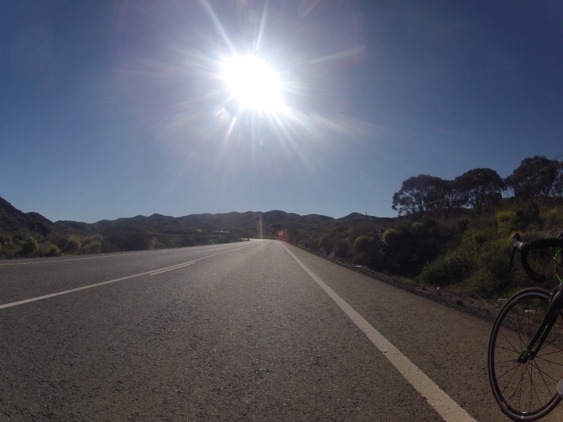 Wieder zurück auf der Strasse. Die Fahnen wehten gegen uns. Es wird ein harter Rückweg gegen den Wind geben. Doch wir hatten ein zweites Mal Glück. Der Wind wehte der Küste entlang gegen uns. Wir waren die erste Gruppe die nach dem Mittagessen gestartet war. Die nachfolgenden Gruppen mussten dem Vernehmen nach deutlich kräftiger gegen den Wind kurbeln. So kamen wir schlussendlich mit einem Schnitt von über vier Kilometer schneller geschlossen in unserem Hotel an, als das geplant war. Es hat allen gefallen, keiner fiel zurück.