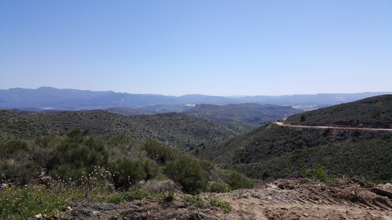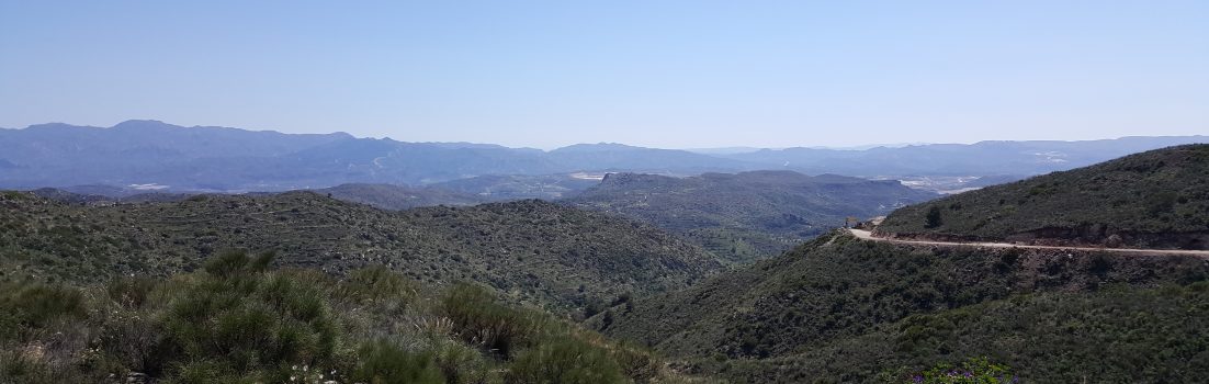 Wir blicken zurück, hinunter über Lubrin und können im Hintergrund die weisse Fläche eines grossen Abbaugebietes von Marmor erkennen. Sie befindet sich in der Nähe von La Rambla Aljibe. Auch dort fahren wir regelmässig daran vorbei. Aus der Nähe hatte ich allerdings noch nicht den Eindruck eines so grossen Abbruches erhalten.