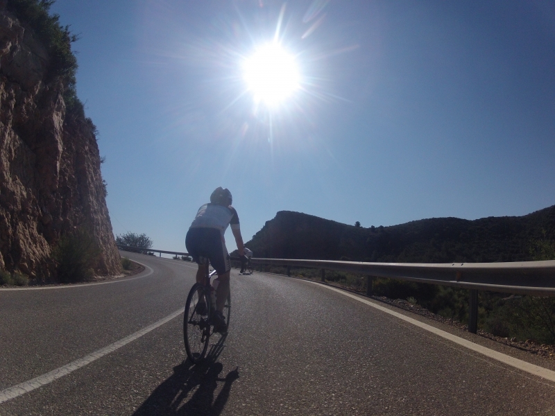 Nach dem Mittagessen in Zurgena waren dann nur noch die letzten acht Kilometer mit einer leichten Steigung zu nehmen. Wiederum vorbei an Zitronen- und Orangenplantagen, bis wir dann den Weg durch die Orangenplantage hinunter ans Meer zurückfuhren. Doch auch hier spielte nochmals ein warmer Wind mit uns. Während der ganzen vielleicht etwa stündigen Fahrt wehte uns immer wieder ein warmer Wind entgegen, oder gab uns auch Schub von hinten. Er schien keine Richtung zu haben, er wollte uns nur austrocknen.