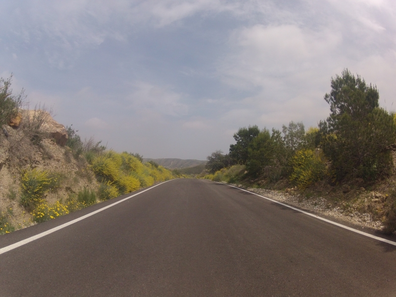 Merkwürdigerweise zeigte sich das Wetter heute zu Anfang ziemlich neblig. Wobei die Wärme immer noch da war. Keine Sonne, schwül-warm, sehr dunstig. Die Fahrt ging heute schon bald ins Hinterland. Gartensträsschen, dann Vera mit dem Spiritu Santo, später Kehrichtpässchen und die Schotterpiste nach Ballabona. Mittagessen in Zurgena.
