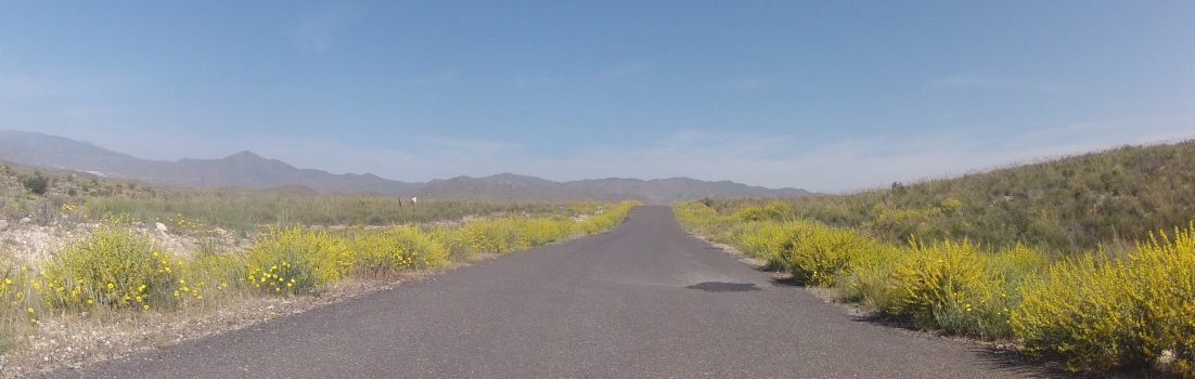 Später, nach dem Mittagslunch, die Via Verde hinunter von Lucainena nach Polopos (Kirchlein bekannt aus dem Film “Vier Fäuste für ein Halleluja” mit Terence Hill und Bud Spencer), da muss ich wohl einen Bedienungsfehler an der Kamera gemacht haben, jedenfalls fing sie keine Bilder von der Strecke ein. Doch die Gäste fanden diese etwa 10 Kilometer Fahrt nicht nur einfach schön, sondern paradiesisch. Die Gebüsche sind Grün, viele Blumen zwar gelb, doch gibt es auch Weisse, Violette und Rote dazwischen. Klar sieht man im Detail immer noch, dass der Untergrund eigentlich ziemlich sandig oder felsig ist, doch das frische Grün und die anderen Farben überwiegen bei Weitem.