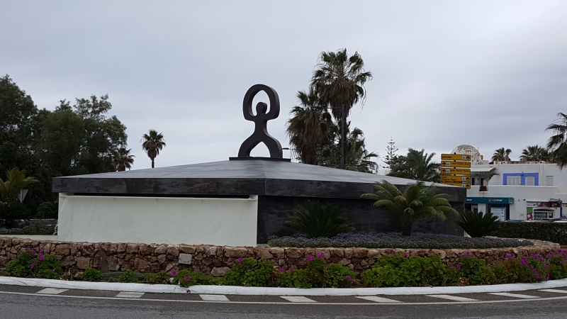 Ich kehrte die Runde um. Fuhr zu erst nach Mojacar Playa. Der ehemalige Wasserkreisel wurde vor kurzem umgestaltet. Man hat jetzt dem Indalo, dem Wahrzeichen der Gegend, einen gebührenden Platz gemacht. Vielleicht etwas schlicht, aber unübersehbar steht er mitten auf einem der grösseren Kreisel hier an der Küste.