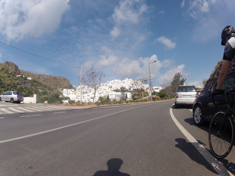 Mit den neuen Gästen verzichtete ich heute darauf, von Mojacar Playa zum Mojacar Pueblo hinauf die Abkürzung zu fahren. Ich fuhr entlang dem Meer und dann beim grossen Kreisel mit dem neuen Indalo ins Mojacar Pueblo hinauf. Das gab mir einerseits die Möglichkeit auf das schöne Rosenbeet entlang der Strasse hinzuweisen und andererseits auch ein bisschen über die Geschichte des Indalos und vor allem über seine Wahlheimat, eben Mojacar Pueblo, zu referieren.