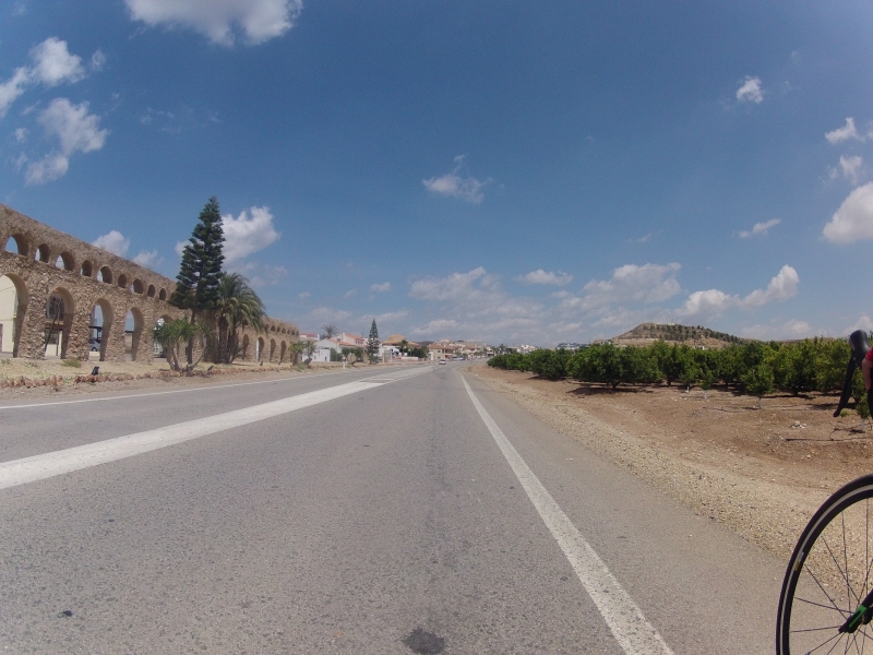 Es folgten bald weitere Orangenplantagen und leider schon wieder abgeräumte Artischocken-Felder. Nicht einmal mehr die Pflanzen waren dort. Umgegraben, eingeebnet. Baumaschinen stehen jetzt dort. Doch das nächste Highlight folgte bald. Die Abfahrt zwischen den sandigen, canyonähnlichen Schluchten entlang der Strasse hinunter nach Cuevas del Almanzora.