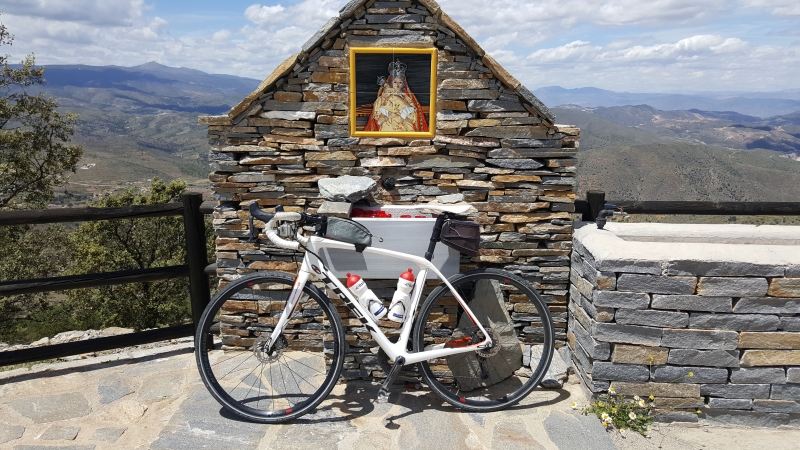 Unsere Fahrt ging bald weiter. Aus Sorbas hinaus, zwischen Olivenplantagen und Mandelbäumen hindurch, hinauf nach Uleila del Campo. Dort wählten wir die Auffahrt nach Benizalon. Der vermutlich einzige Weg, auf dem man mit dem Rennrad bis kurz vor die ehemalige Einsiedlerhütte, oder eben dem heutigen Unterstand mit dem Alter, hinauffahren kann.