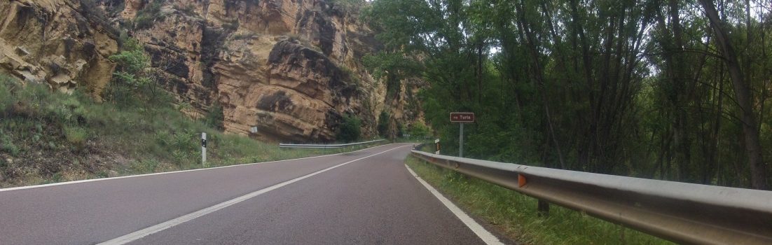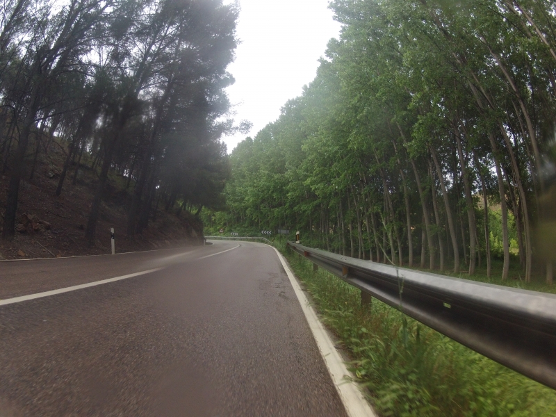 Obwohl die Strasse vielleicht mit unseren Schnellstrassen verglichen werden kann, war es durchaus nicht langweilig darauf. Ich kam zügig voran, immer wieder wechselte die Richtung, immer wieder wurde entlang der Strasse anderes angebaut. Anfänglich Reben, dann Mandelbäume, später “hochalpines Nichts”. Auf der Ebene waren es eher längere gerade Streckenabschnitte über Geländewellen, im zweiten Teil entlang des Rio Turia, wurde es dann streckenweise richtig kurvig.