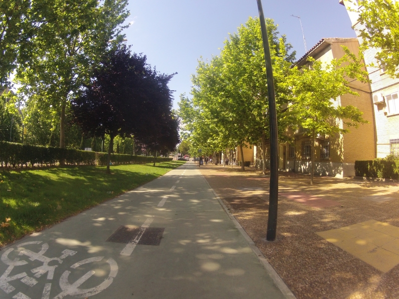 Nach der letzten Abfahrt, kurz nach KM 120 nochmals ausgedehnte Getreidefelder und Felder mit Rebenstöcken, bevor sich langsam die industrielle Agglomeration vor Zaragoza bemerkbar machte. Es traf sich übrigens so, dass ich zu meiner gewünschten Route zum Hotel ein grösseres Stück auf einem schönen Radweg, mitten durch Zaragoza zurücklegen konnte.