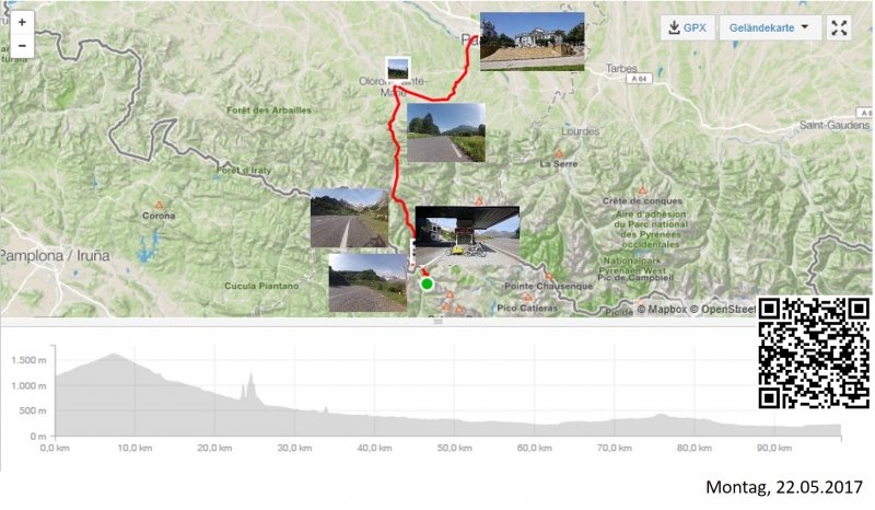 Bis ich dann aber schlussendlich in Pau ankomme, muss ich doch noch ein paar Mal kräftig in die Pedale treten. Die Rampen auf der Nordseite der Pyrenäen scheinen mir heftiger zu sein als auf der Südseite. Auch hat es jetzt wesentlich mehr Verkehr auf der Strasse als noch im Süden.